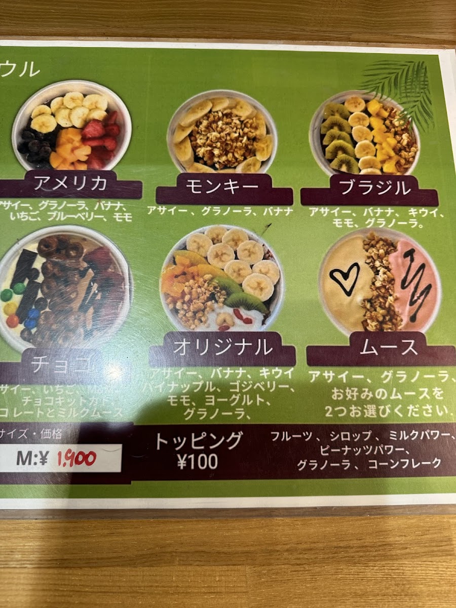 Among the must-try offerings, the モンキーボウル (Monkey Bowl) stands out, available in both small and large sizes for JP¥500 and JP¥1,700 respectively. This delicious bowl is a beautiful fusion of ingredients, allowing you to customize it to your personal preference, which has earned it rave reviews from delighted customers. Another crowd-pleaser is the ヌテラムース (Nutella Mousse) priced at JP¥1,300, which has captured the hearts of chocolate lovers like Yulli Mori, who shares her love for the indulgent creaminess of this dessert. For a light complement, don’t miss out on the refreshing パイナップル (Pineapple) or the classic M&M’s, each available for just JP¥100.